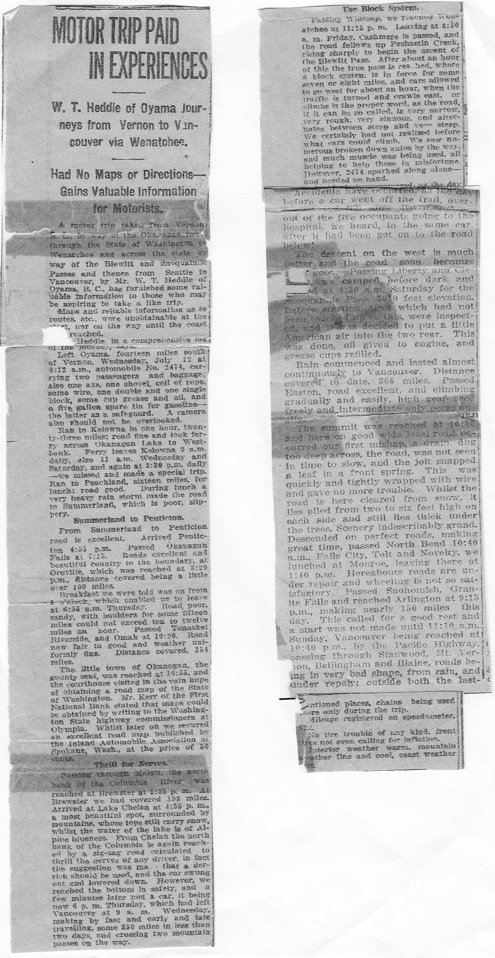 Vernon News article: Heddle Motor trip from Oyama to Vancouver