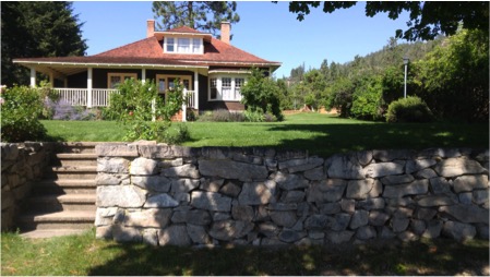 The Gibson House, with stone property wall in front: built by Teddy Hare and Jim Gleed.
