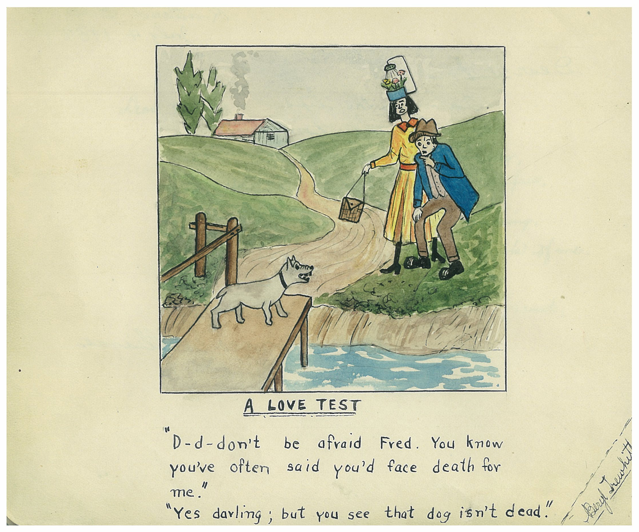 I see that the picture and writing called, A LOVE TEST, was done by my aunt, Beryl Trewhitt. She now lives in New Zealnd and will be 94 in a couple of months. I will write her and tell her about seeing her entry in Wilma Clement’s autograph book. I know she will laugh when she learns about this.