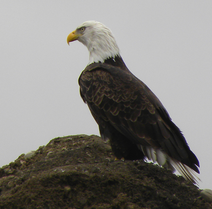 I mentioned the birds’ fondness for salmon. Many of you will know of the huge concentration of Bald Eagles at Brackendale near Squamish, and other coastal points in British Columbia and Alaska, where eagles come to feed on spawning salmon. They can be seen in the hundreds at times. It has been shown that some of the birds come from as far away as the mid-western United States and Canada’s prairie provinces to join the feast. When you think about it, it is remarkable that such a bird leaves an area where water bodies are frozen for much of the winter months, flies several hundred kilometres or more, and reaches the coastal river mouths to fatten up on the plentiful supply of fish. Obviously the expenditure of effort is more than compensated for by the abundance of the food. But how do they know? And how do they know when?