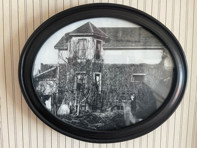 The hundred year old Ginkgo biloba tree now towers over the two story home and is one of the largest and oldest of it’s species in our province. This is a male species, as the female Ginkgo trees are not desirable due to its rotten fruit like smell, and hence the species almost went extinct. This is a primitive tree, remotely related to ferns & roamed the earth at the time of the dinosaurs. This tree existed before bees came on the evolutionary scene. Therefore these trees do not need to be pollinated. The house also features the original wisteria seen on the old pictures, which was carefully scaffolded away from the house during the last massive renovations. One of the original bath-outhouses still exists but was recently moved to the back of the property.