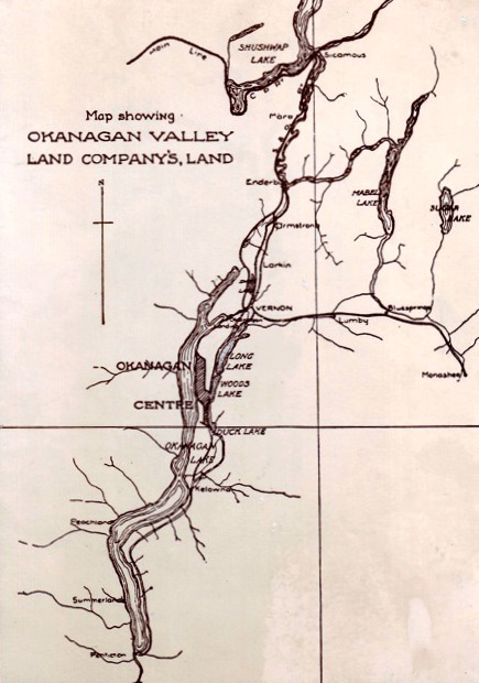 Photo Sources: Okanagan Valley Land Company map is courtesy of the Kelowna Public Archives; the Opening of the Okanagan Valley Packinghouse in Okanagan Centre photograph is the property of the Lake Country Museum and Archives. Click photographs to enlarge.